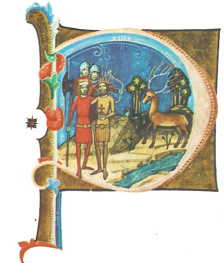 Magyar kódexek miniatúráin is vannak egyszerű keresztes országalmák. Ezt az 1358-ban írt Képes Krónika egyik iniciáléjának képével szemléltetjük5 .