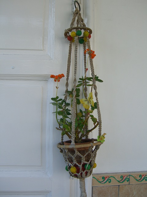 Makramé csomózású virágtartóm