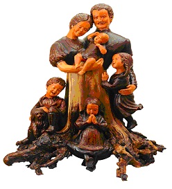 Szépen fejezi ki ezt Józsa Judít szobrász-művész egy tövet alkotó Magyar család c. szoboregyüttese (Gedai Csaba fényképe).