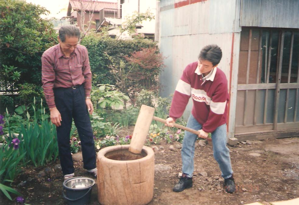 A gazdáék ebéddel is vendégül láttak. Már megérkezésünkkor – a japánok számára csemegének számító – saját termelésű főtt krumplival, hozzá vajjal és zöldteával kínáltak. Utána következett a látogatás másik fő eseménye, a dangókészítés. A dangó japán rizslisztből készül, melyet vízzel összekevernek, gőzzel megpárolnak, főtt ürömfűvel összedagasztanak, majd kivájt fatönkben nagy fakalapáccsal melegen kivernek. Ez utóbbi műveletre kimentünk az udvarra és egymás után kézbevéve az ötkilónyi nagy kalapácsot, jól kivertük a dangótésztát. Ez lényegében a dagasztás egy különleges módja.