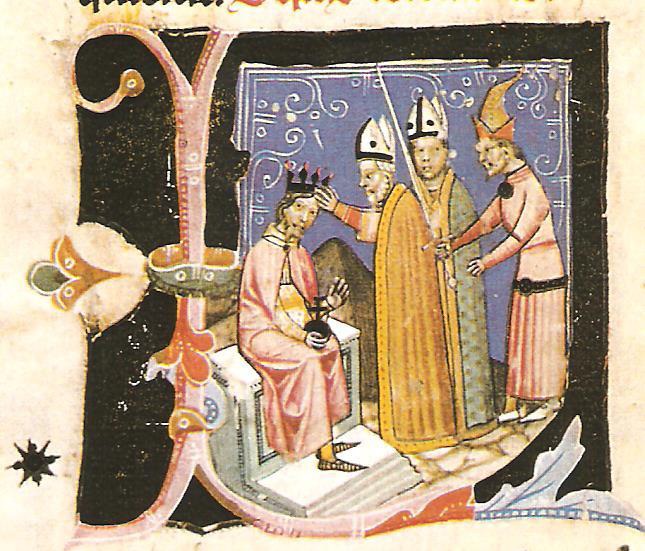 III. Istvánt 1162-ben koronázták meg. A Képes Krónika koronázásról szóló iniciáléin ő